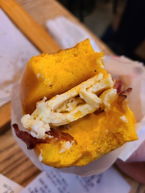 샌드위치 추천은 에그 베이컨, 필리 치즈.