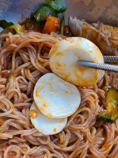 고명들은 아삭하니, 적당히 쫄깃한 메밀면은